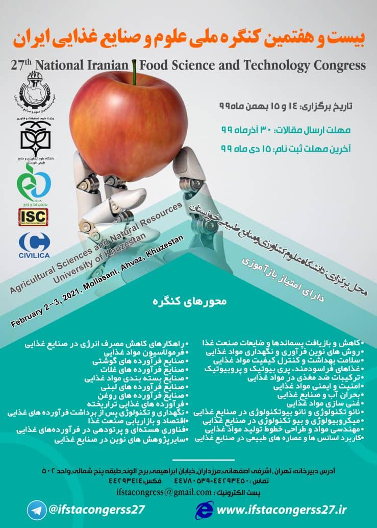 بازدید: 313 مدیریت نظارت بر مواد غذایی،آرایشی و بهداشتی> اطلاعیه ها - آبان ماه 99: ♦♦♦ اطلاعیه ها - آبان 1399 : * تکمیل و ارسال چک لیست ارزیابی برنامه های پیش نیازی99 (PRPs) * محصولات قهوه غیر مجاز * 27امین کنگره علوم و صنایع غذایی ++پوستر