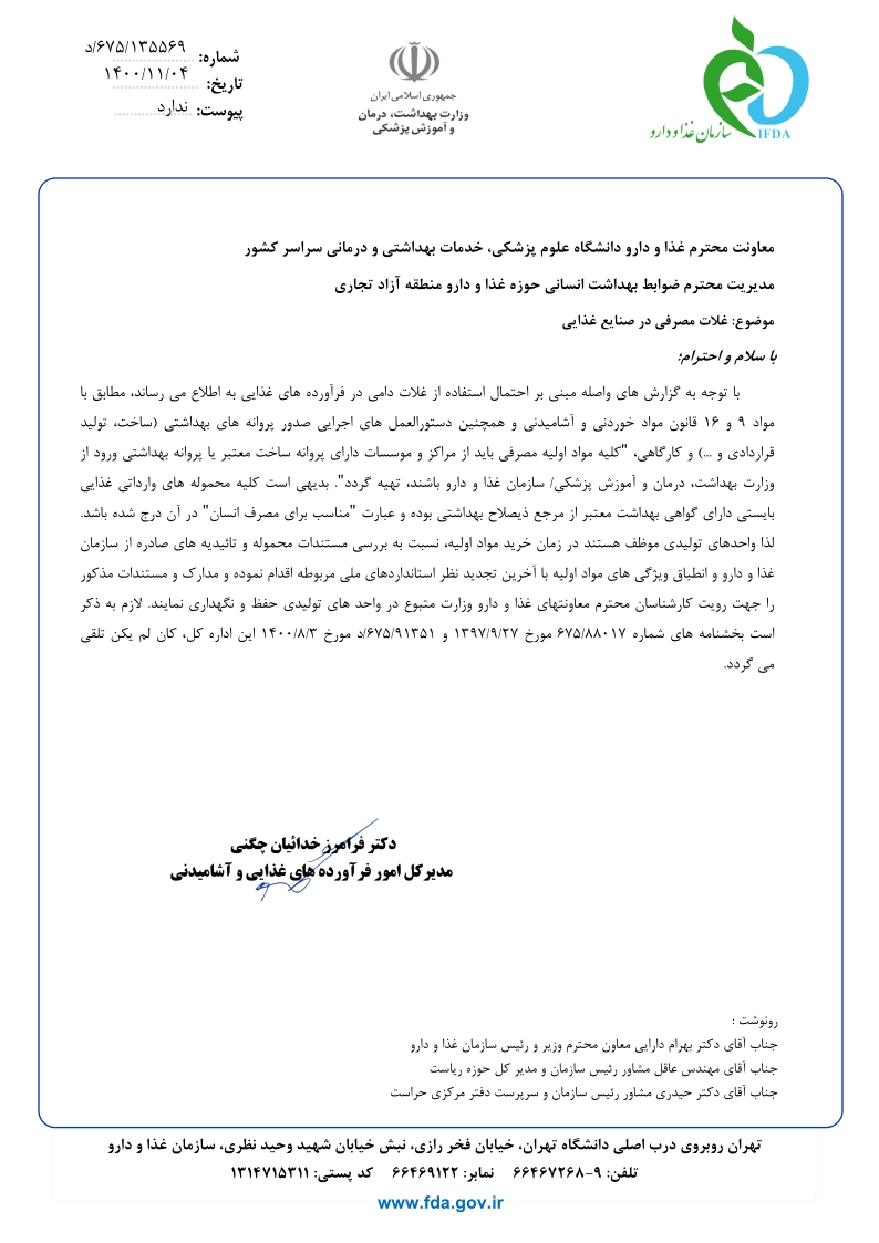 بازدید: 188 مدیریت نظارت بر مواد غذایی،آرایشی و بهداشتی> اطلاعیه ها-بهمن ماه 1400: ♦♦♦ اطلاعیه ها - بهمن 1400 : * غلات مصرفی در صنایع غذایی * صدور مجوز مصرف کالاهای اساسی وارداتی * اقلام غیرمجاز *