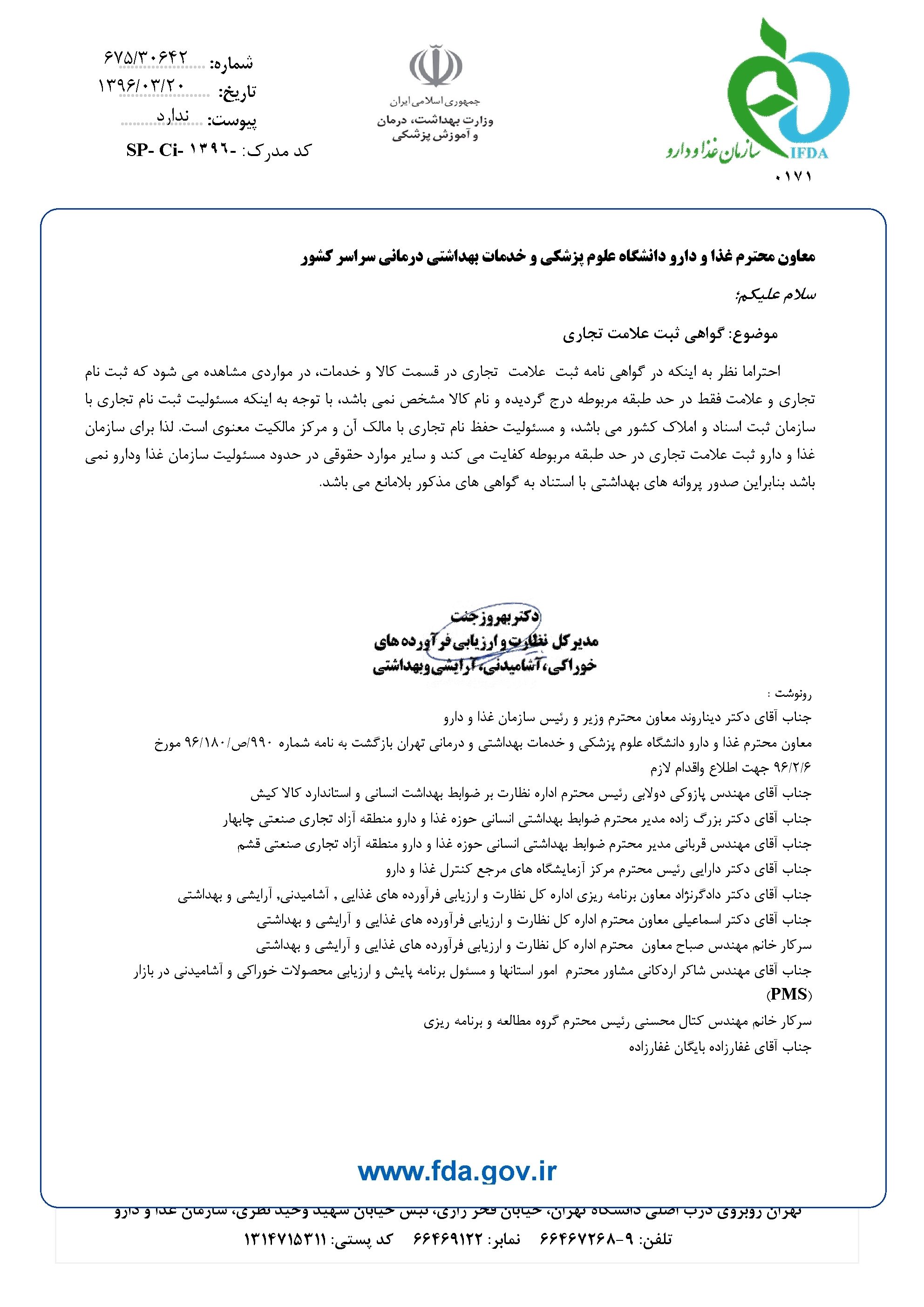 بازدید: 449 مدیریت نظارت بر مواد غذایی،آرایشی و بهداشتی> اطلاعیه ها - خرداد ماه 96: ♦♦♦ اطلاعیه ها - خرداد 1396 : * تائیدیه حلیت مواد و فرآورده های خوردنی و آشامیدنی * مرکز تحقیقات حلال جمهوری اسلامی ایران * ثبت علامت تجاری